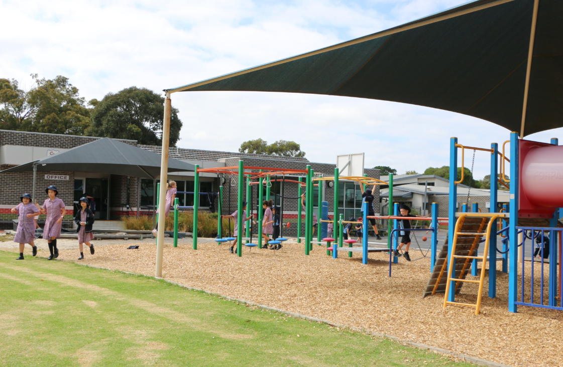 The school grounds provide spacious play areas, including a large grass oval, shaded adventure playground, vegetable garden and quiet courtyard area.